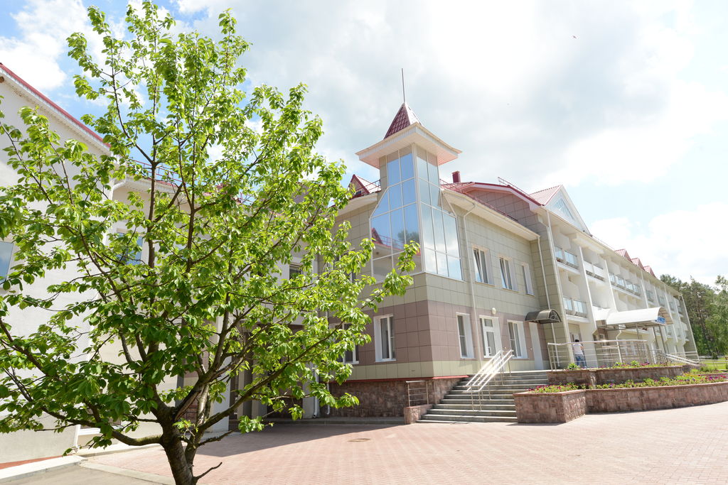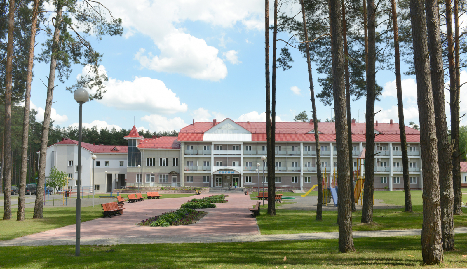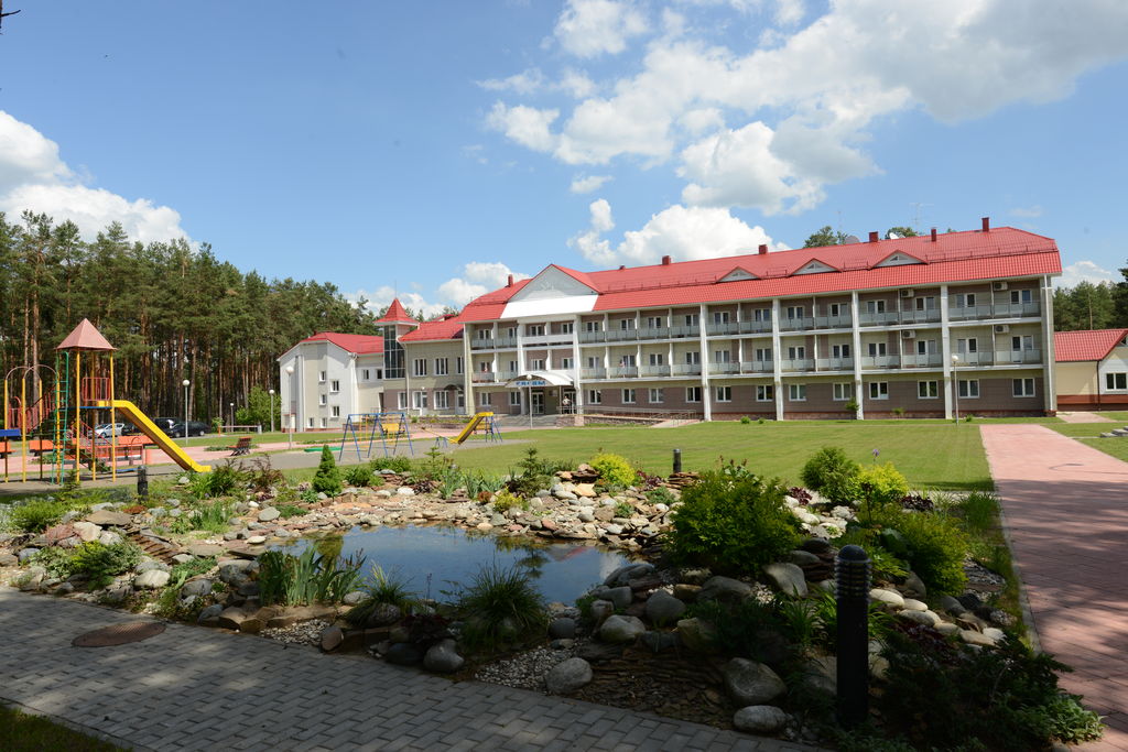Санаторий «Сосны» разместился в южной части Беларуси в 145 километрах от Гомеля. Здравница занимает благоустроенную территорию площадью чуть больше 9 гектаров, окруженную экологически чистым сосновым бором. На территории расположились два жилых корпуса: двух- и трехэтажный (без лифта), соединенные между собой теплыми переходом. В санатории работает столовая с двумя обеденными залами, там отдыхающие могут заказать себе питание, в том числе и диетическое. Также в распоряжении гостей банный комплекс с парной и крытым бассейном, тренажерный зал и спортивные площадки, есть караоке, бильярд. По вечерам регулярно устраиваются кинопоказы и проходят развлекательные мероприятия. Для юных гостей организована игровая площадка с горками и батутом, проводятся детские дискотеки с участием аниматоров. Многопрофильный санаторий предлагает отдыхающим целый ряд оздоровительных и леченых процедур. Среди них такие традиционные санаторно-курортные лечения, как бальнеотерапия, грязелечение, физиотерапия, ЛФК, массажи, а также нафталановые аппликации. Помимо этого, на территории санатория есть две скважины с природными минеральными источниками, и применяются грязи, привезенные с крымского озера Саки и нафталан из Азербайджана.